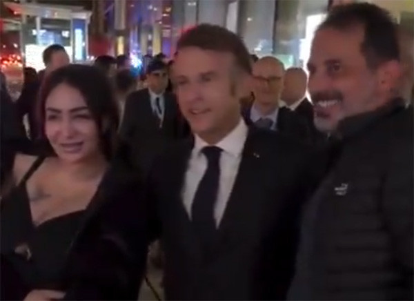 马克龙当街给特朗普打电话 视频截图