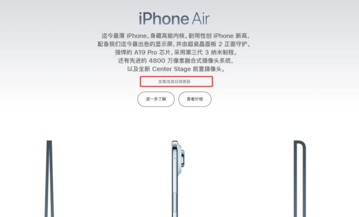 苹果AppleStore官网将iPhoneAir发售时间改为“发售信息后续更新”“所有机型将在获得批准后发售”。